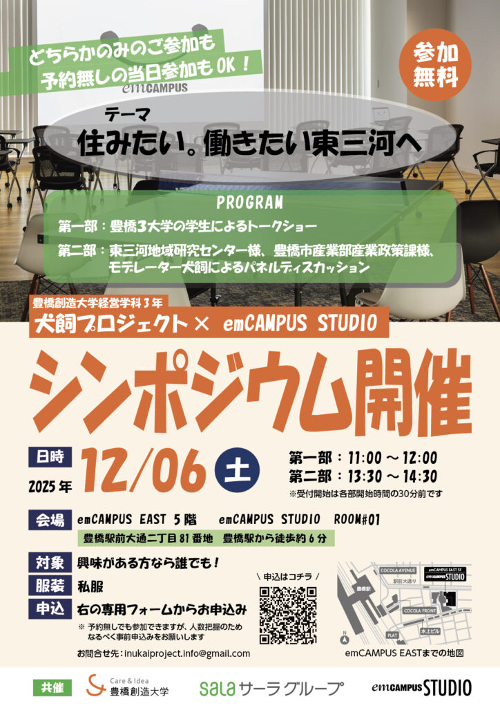 犬飼プロジェクト× emCAMPUS STUDIOシンポジウム ~ 住みたい。働きたい東三河へ ~