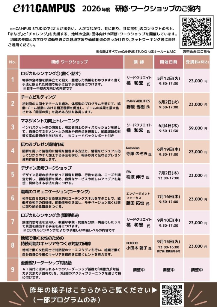 【今年も開催します!】2026年度emCAMPUS研修一覧